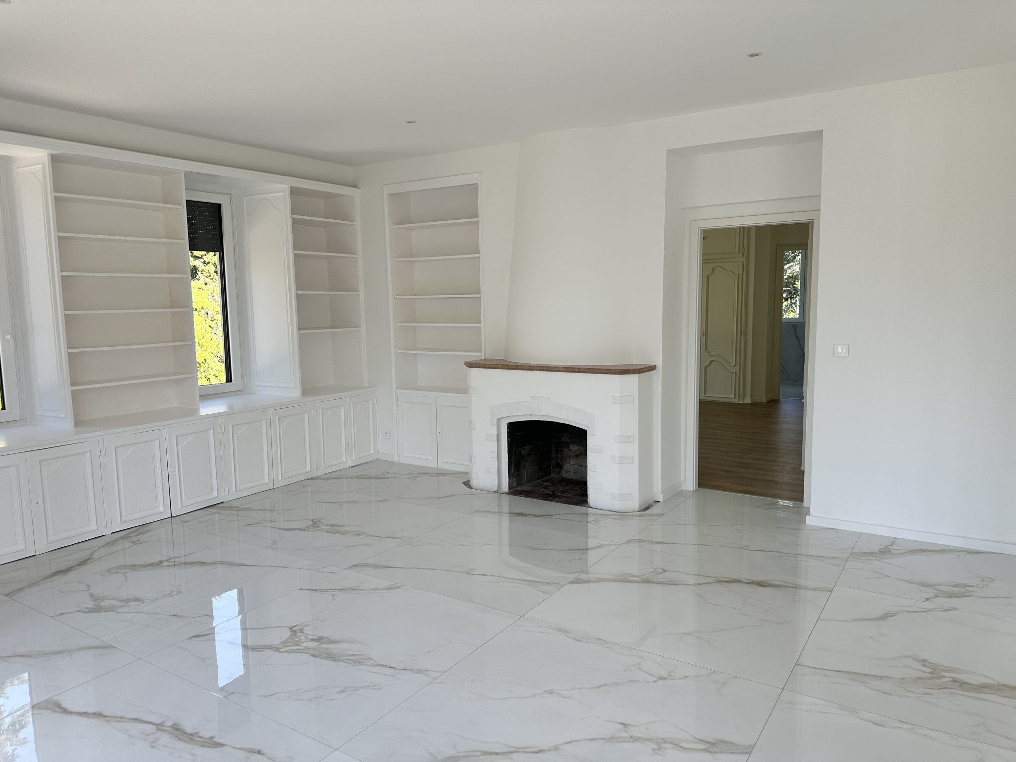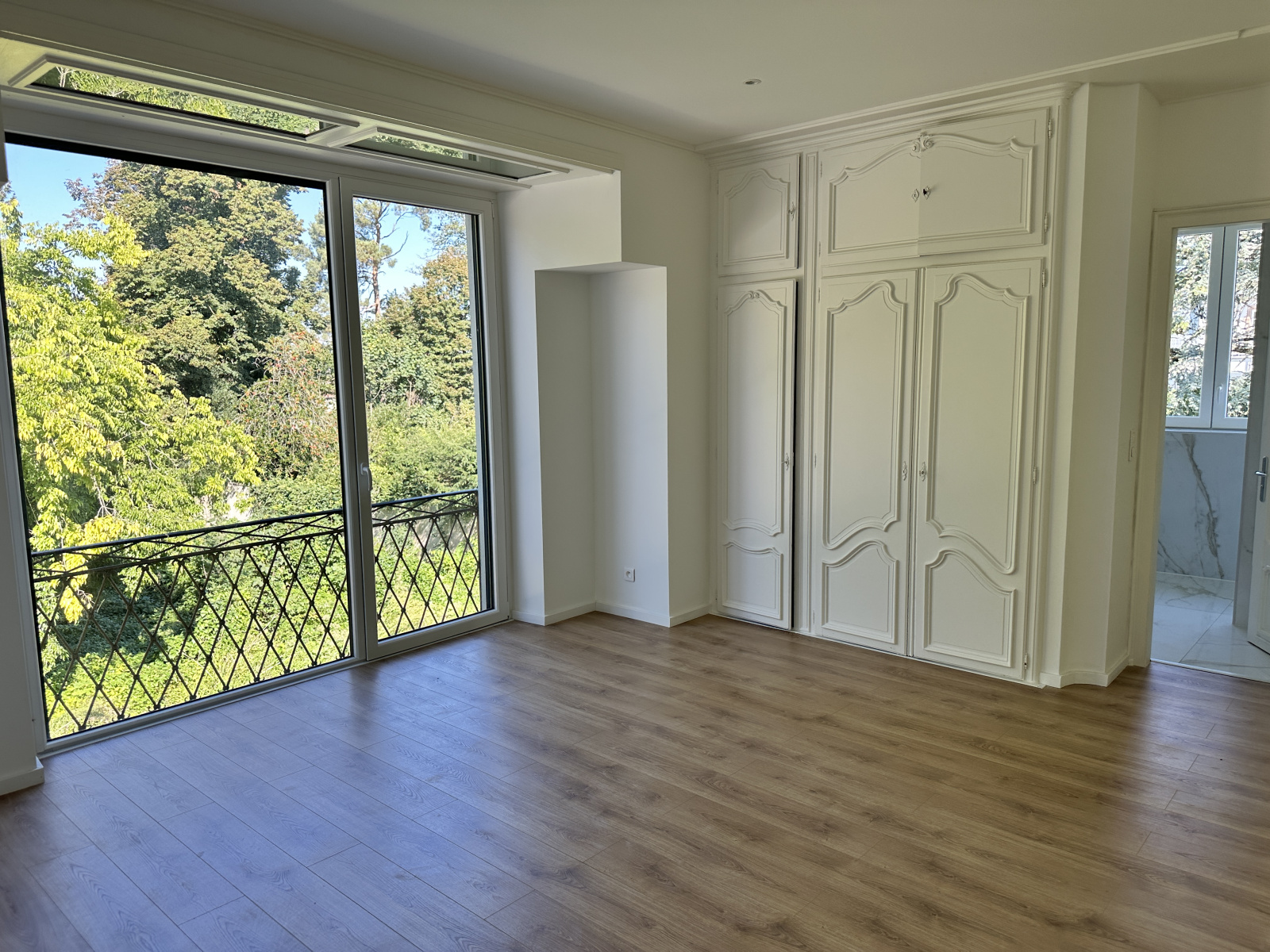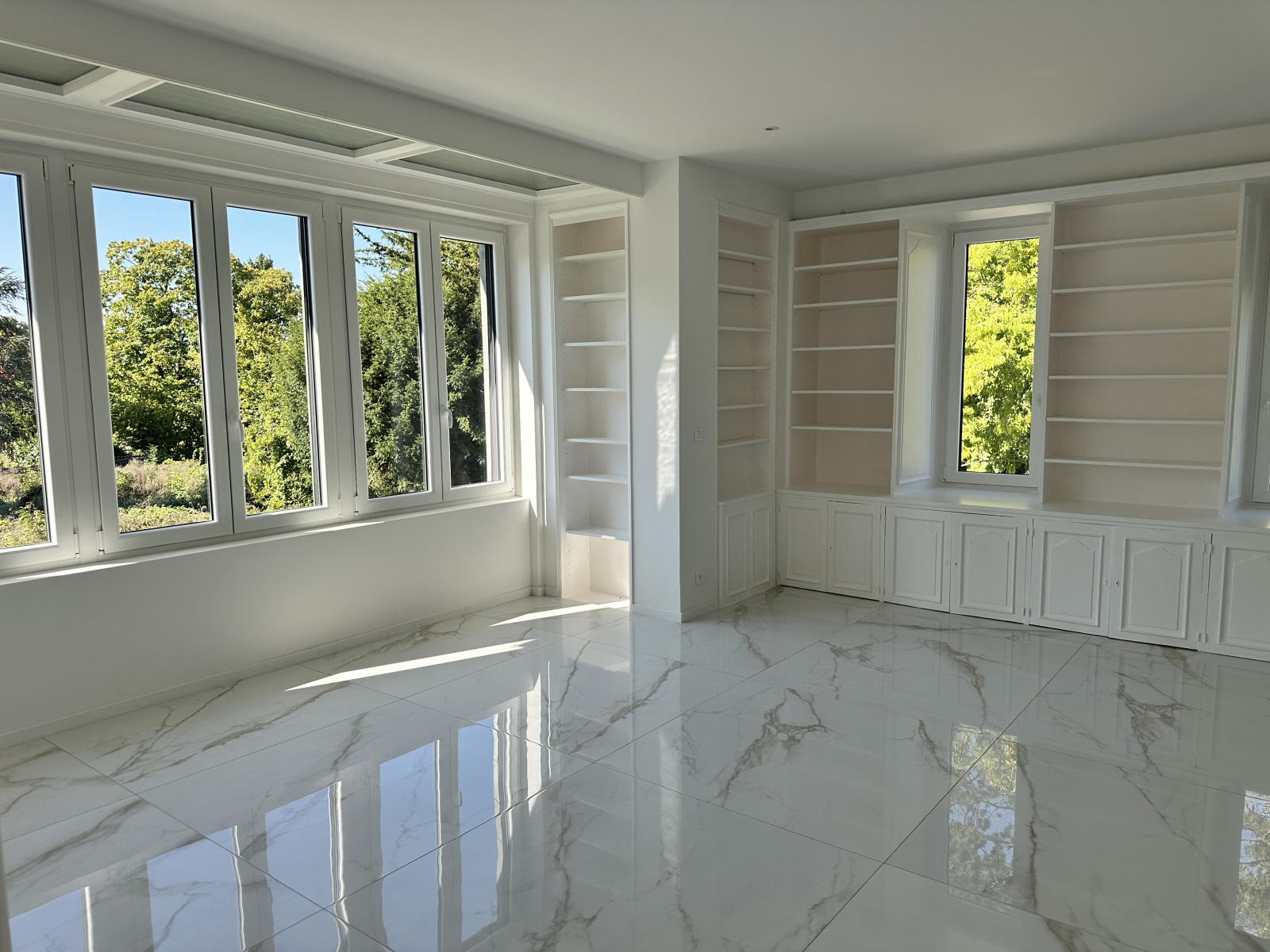 En quête d'espace et d'un environnement verdoyant ? Découvrez cet appartement se composant comme suit : un hall d'entrée avec un espace chaufferie pouvant également servir de dressing d'entrée, un vaste salon-séjour avec cuisine équipée ouverte (cuisine haut de gamme Signature Cuisine) depuis laquelle vous accédez à la terrasse et au jardin, un espace bureau/bibliothèque avec cheminée, 4 chambres avec salles de bains attenantes, et un wc séparé.