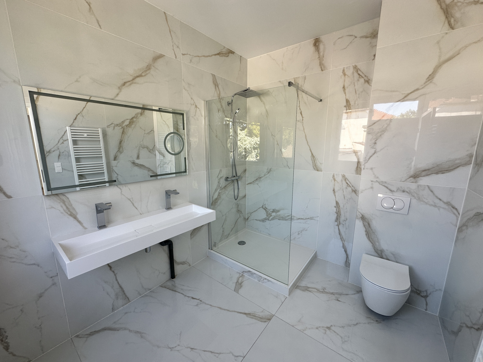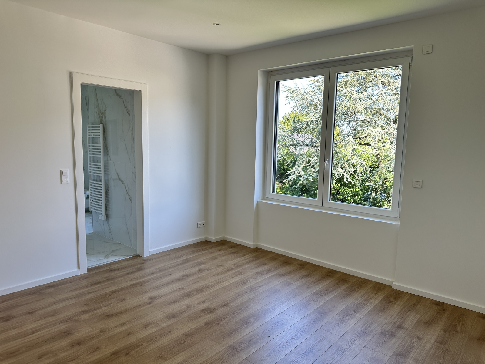 Prestations : chaudière gaz individuelle, chauffage au sol, volets motorisés, double vitrage complet.