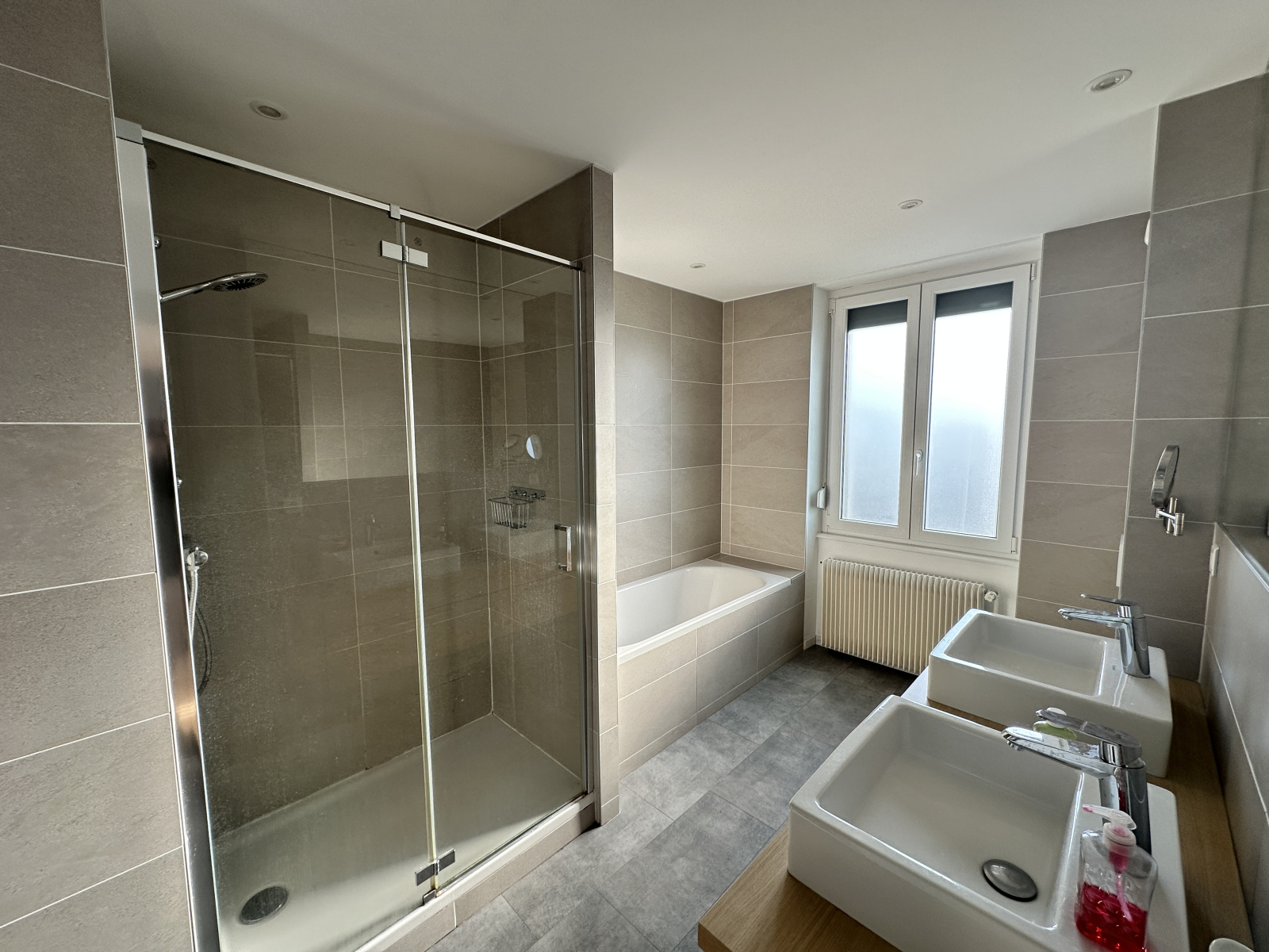 Sous-sol complet avec cave, chaufferie (chaudière au gaz), sortie vers cour.