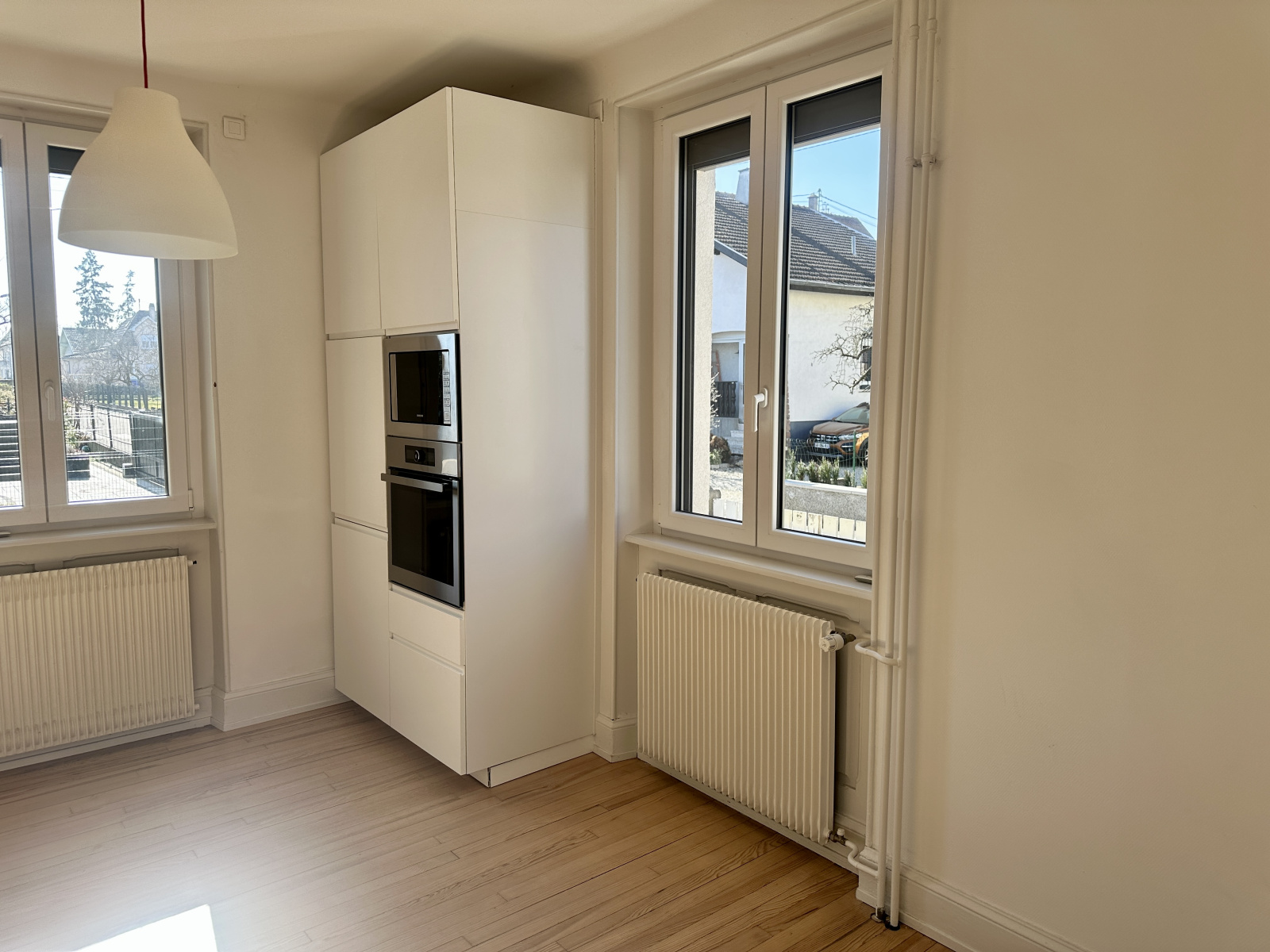 A l'extérieur, une cour pour y garer 3 voitures, un espace jardin, une petite dépendance. Pas de garage en place, mais possibilité d'en rajouter un, ou bien de mettre un carport.