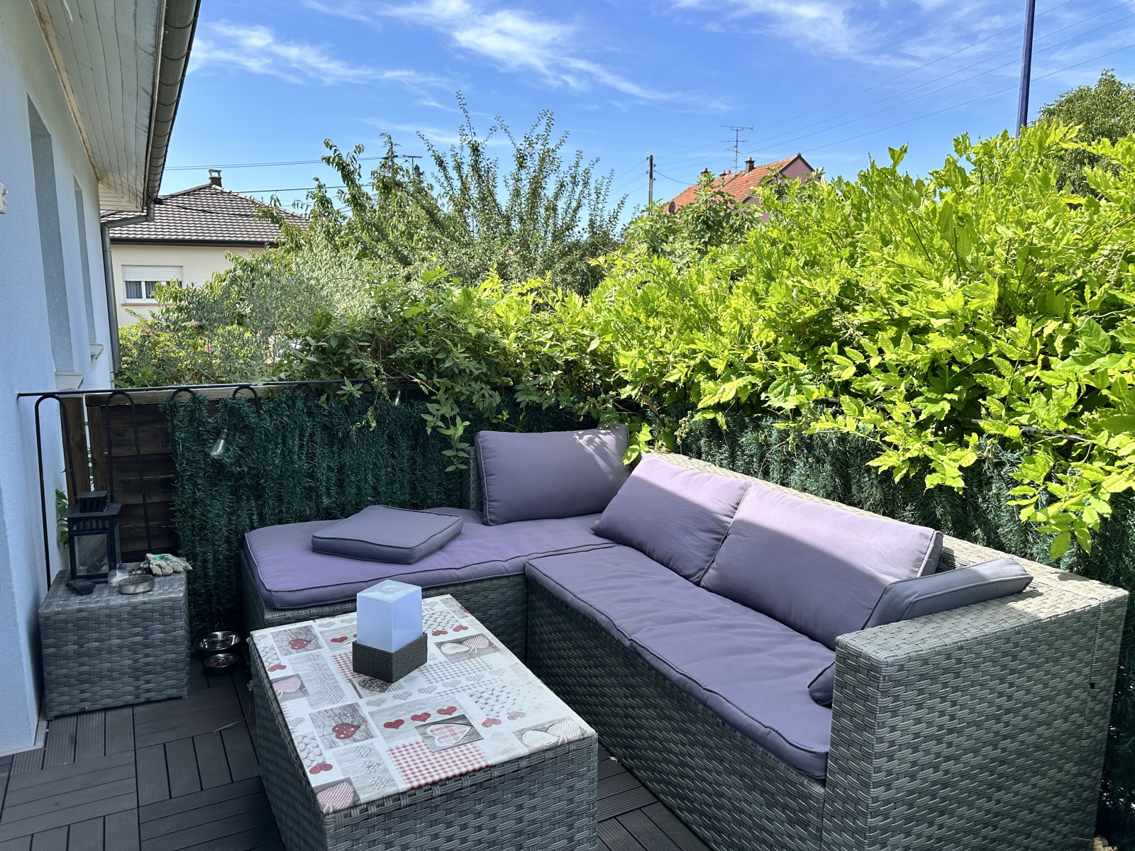 A l'extérieur, une cour, un emplacement de parking, une terrasse à l'abri des regards, un jardin clos et paysagé, une seconde terrasse permettant l'accès à la maison. L'ensemble sur une parcelle de 5.66 ares.