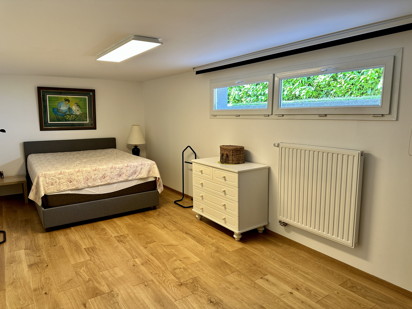 Au sous-sol, une chaufferie, une cave, un espace rangement, un garage double en long, ainsi qu'une grande pièce de 25 m² aménagée en chambre, avec sa salle d'eau équipée et wc (idéal pour une chambre d'amis, salle de jeux, salle de sport ...).