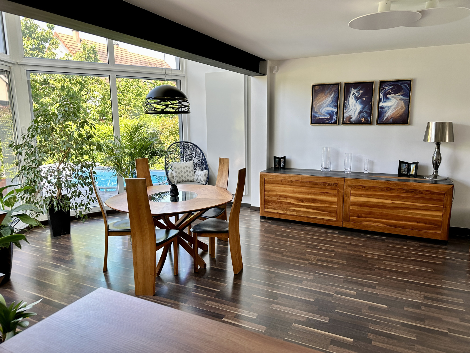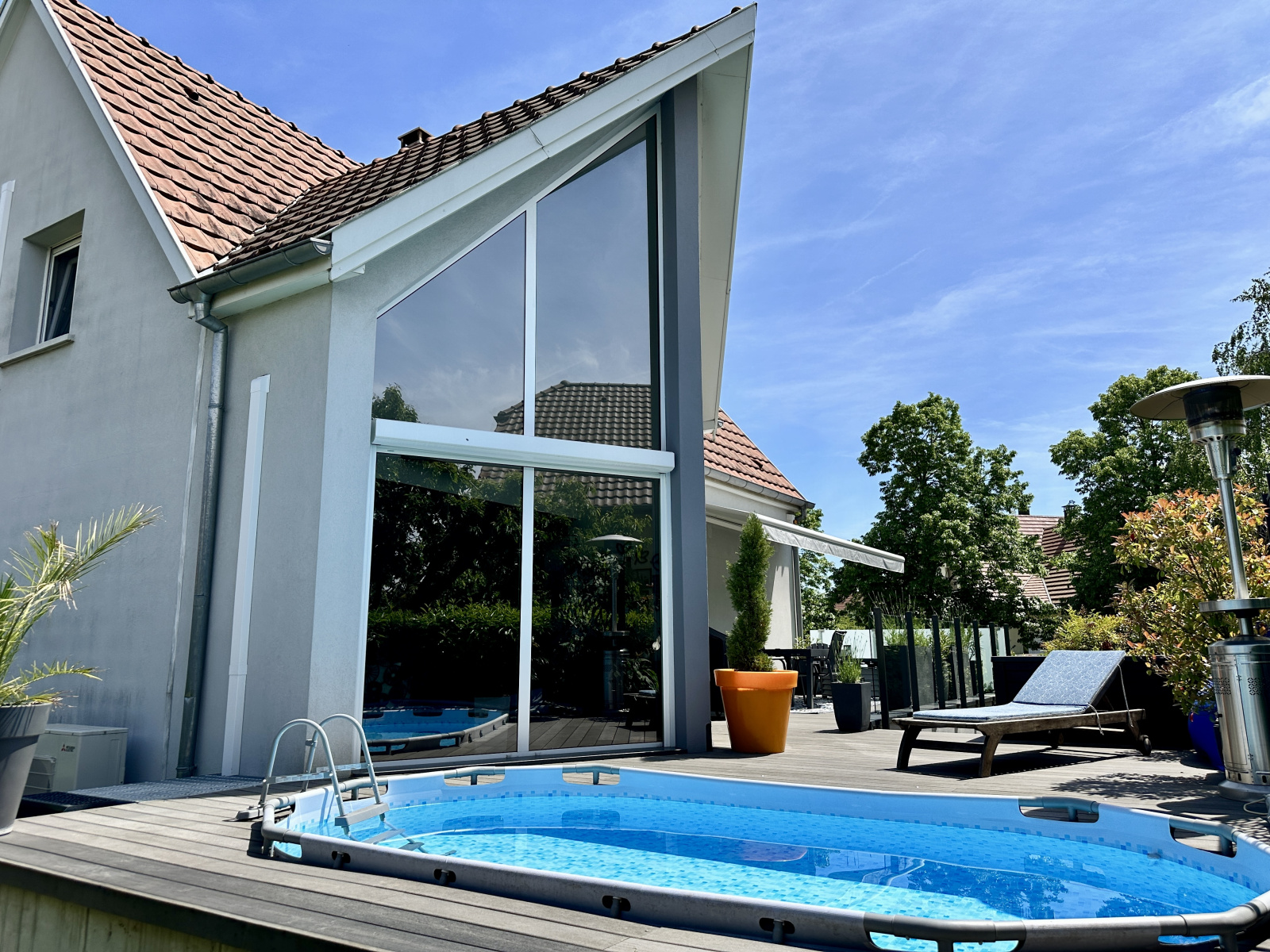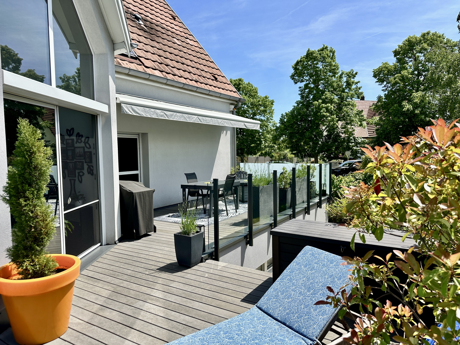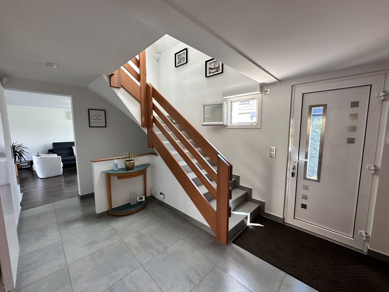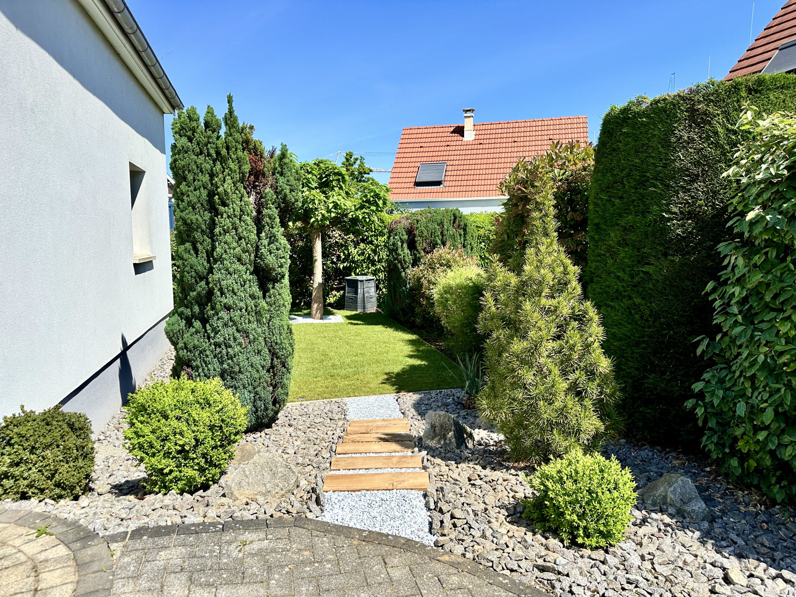 SAUSHEIM, situation calme dans rue non passante, nous vous proposons à la vente cette très belle maison Batige des années 1995, entièrement rénovée, d'une surface d'environ 150 m² + 25 m² aménagés au sous-sol.