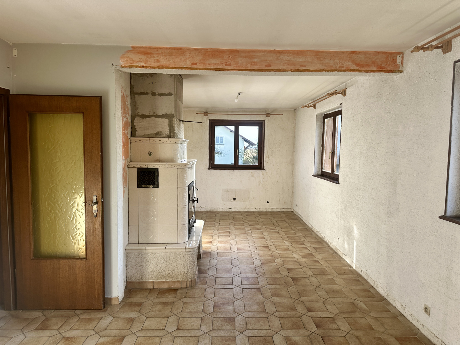 Double vitrage bois ancien, volets battants en bois, chauffage electrique, kachelofen.