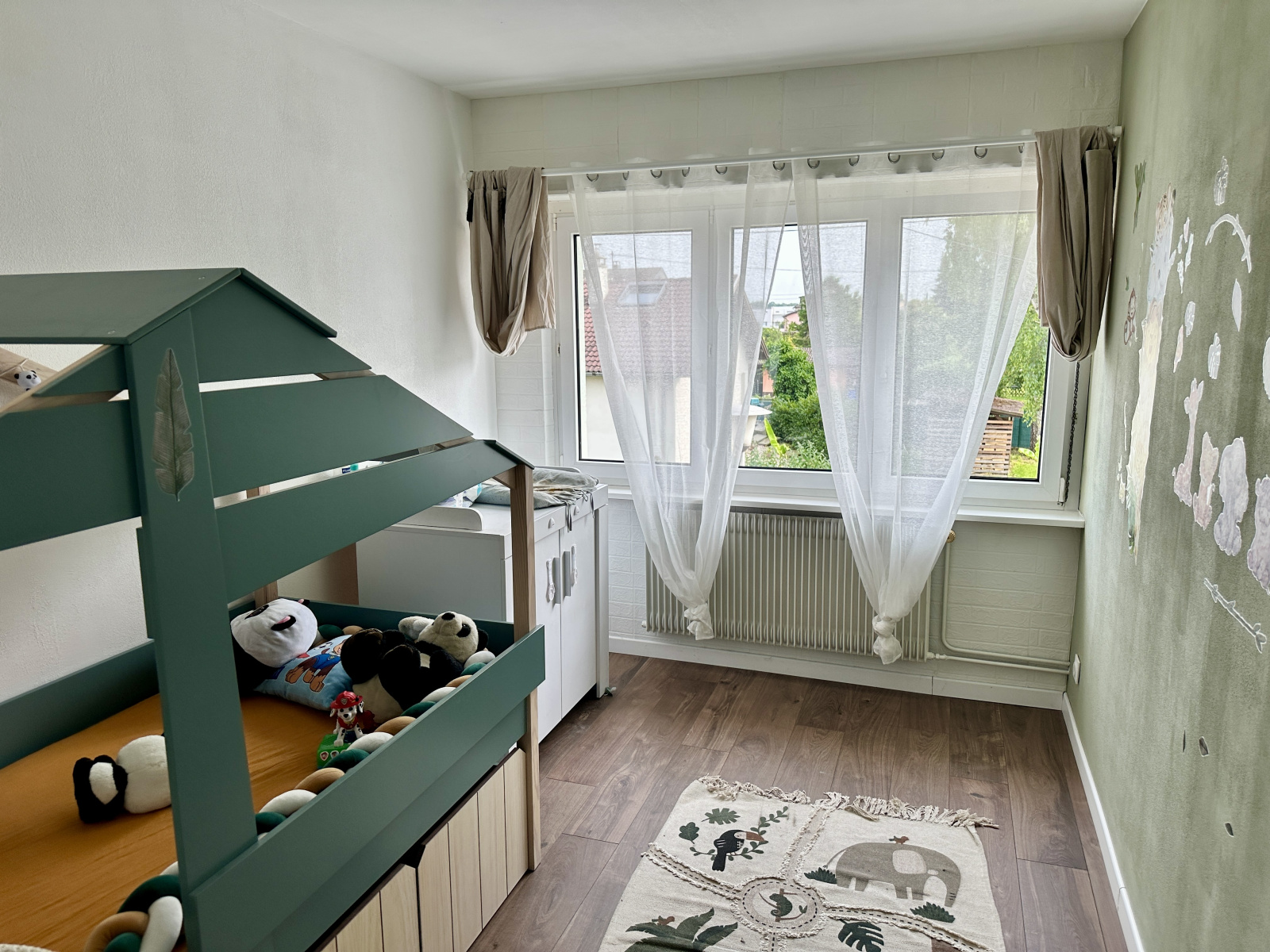A l'étage, un dégagement, une salle de bains rénovée, deux chambres enfant, une chambre parentale.