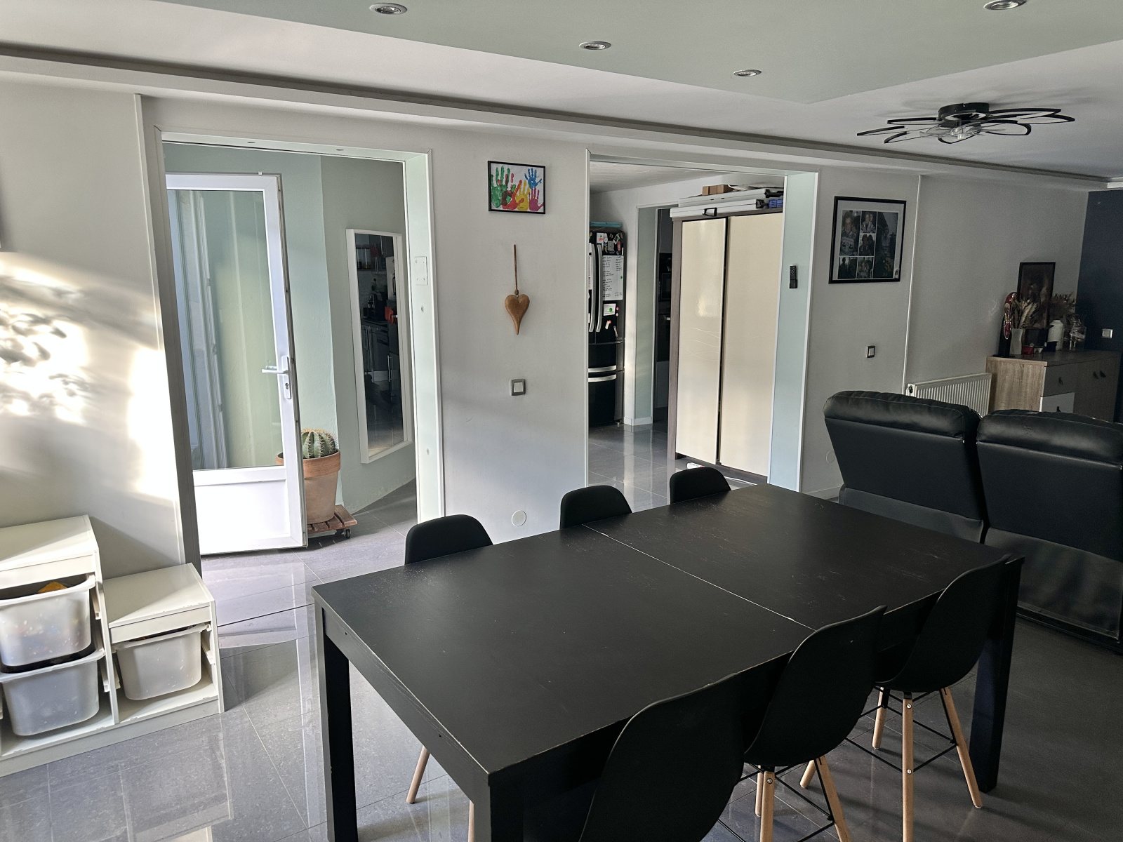 Elle comprend un hall d'entrée, un cellier / buanderie, 3 chambres enfant, une salle d'eau avec douche, un wc séparé, une chambre parentale, une cuisine équipée, un grand salon salle à manger. La maison comprend 4 chambres car une extension a été faite en lieu et place de l'ancienne terrasse.