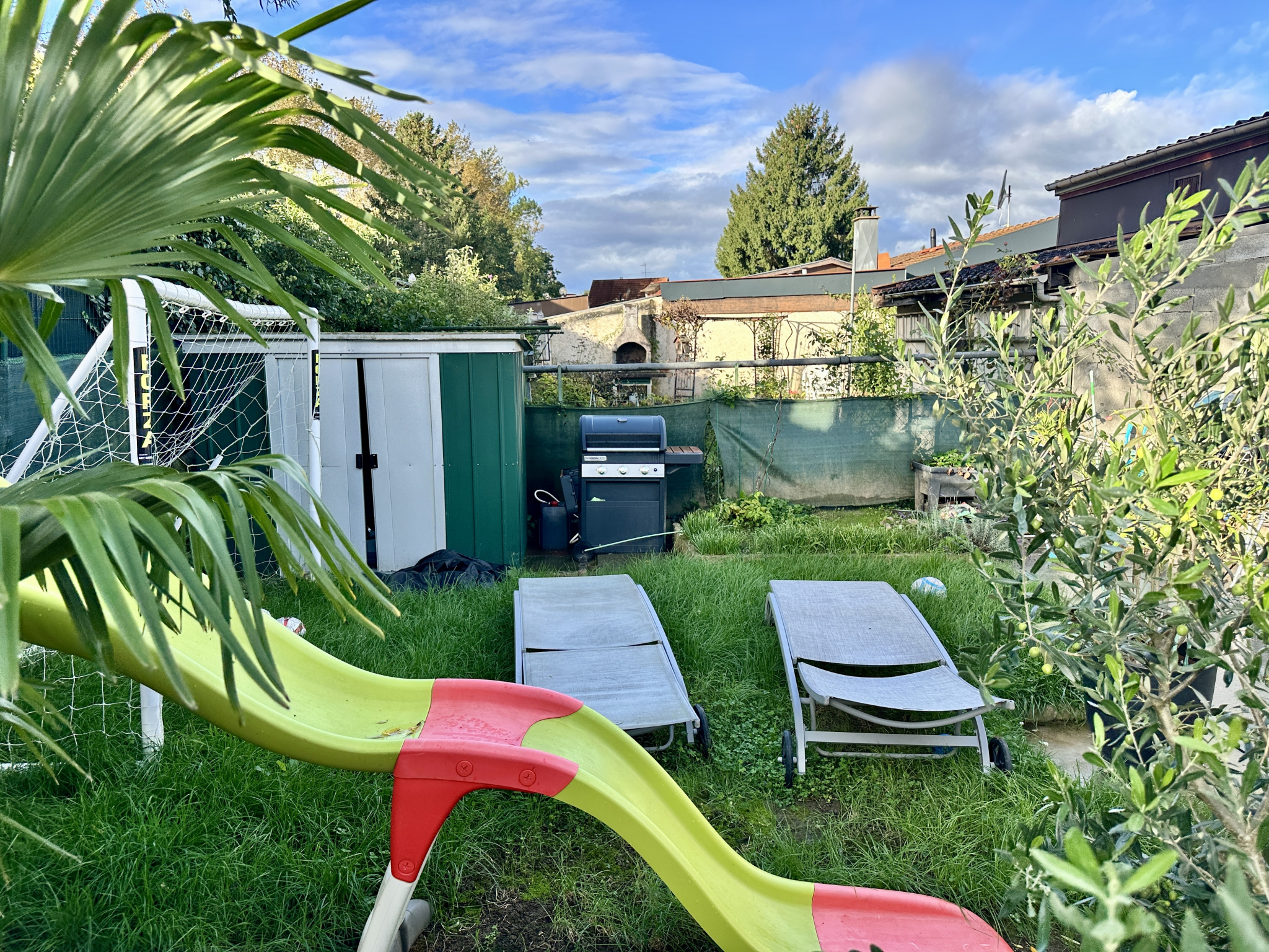 A l'extérieur, une terrasse, un jardin clos avec piscine hors-sol.