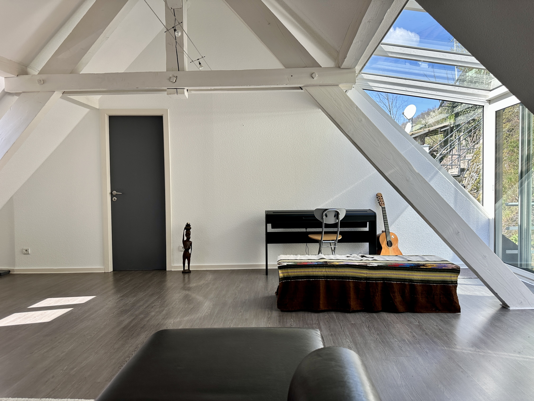 Au dernier niveau, un bel espace ouvert faisant office de grand salon / espace conviviale, une pièce buanderie / chaufferie, une terrasse accrochée à la roche et la nature, le tout sans vis à vis.