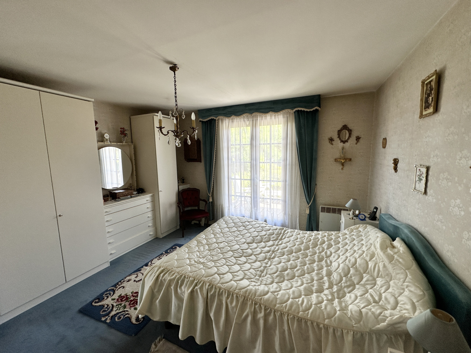 Double vitrage bois ancien, chauffage électrique.