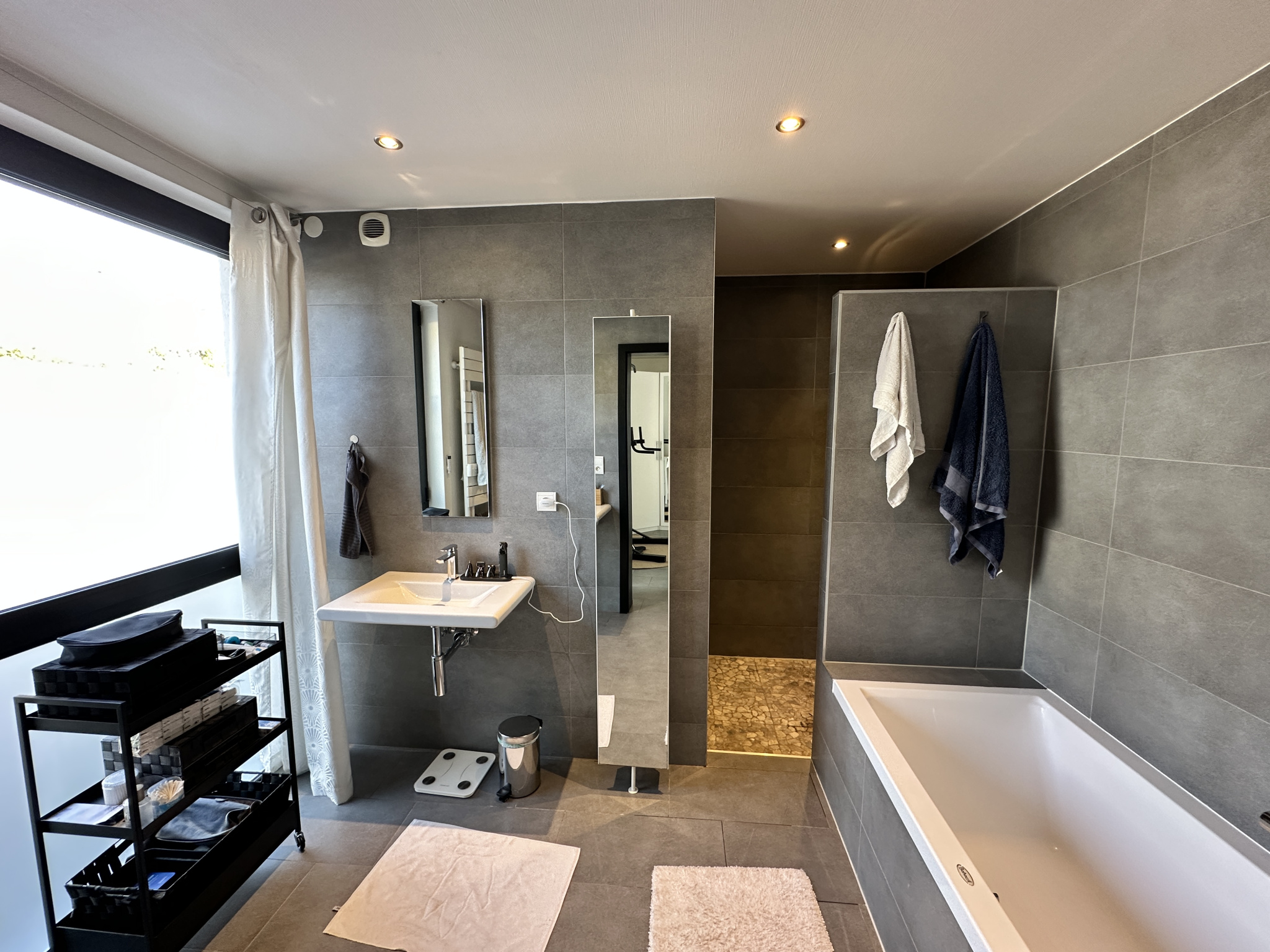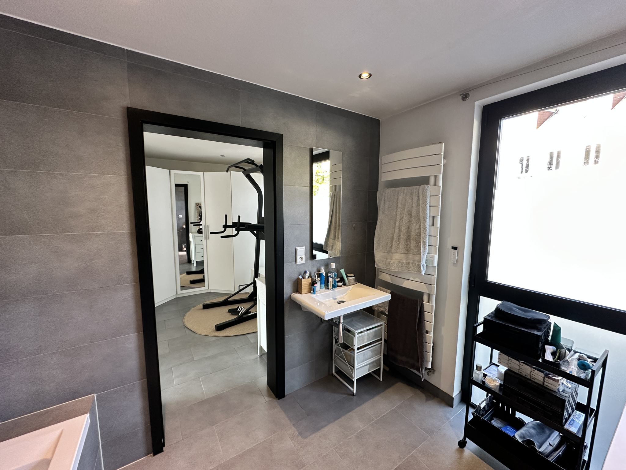 Au sous-sol, une pièce pouvant faire office de chambre ou salle de sport, une salle d'eau avec douche et wc, un espace spa comprenant un sauna (jacuzzi en place mais HS, à remplacer), une cave, espace chaufferie, local technique piscine.