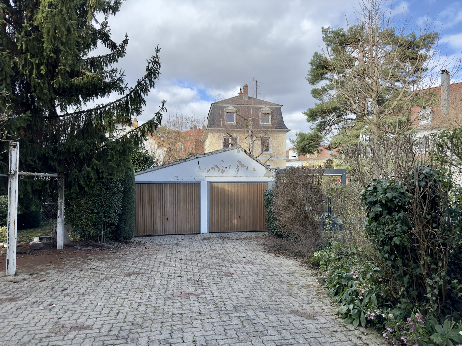 A l'extérieur une cour, un double garage, un petit jardin.