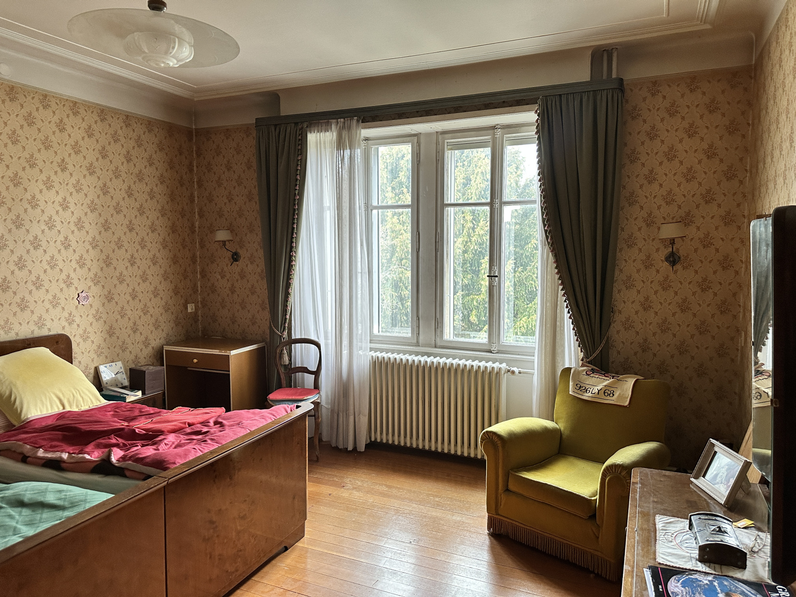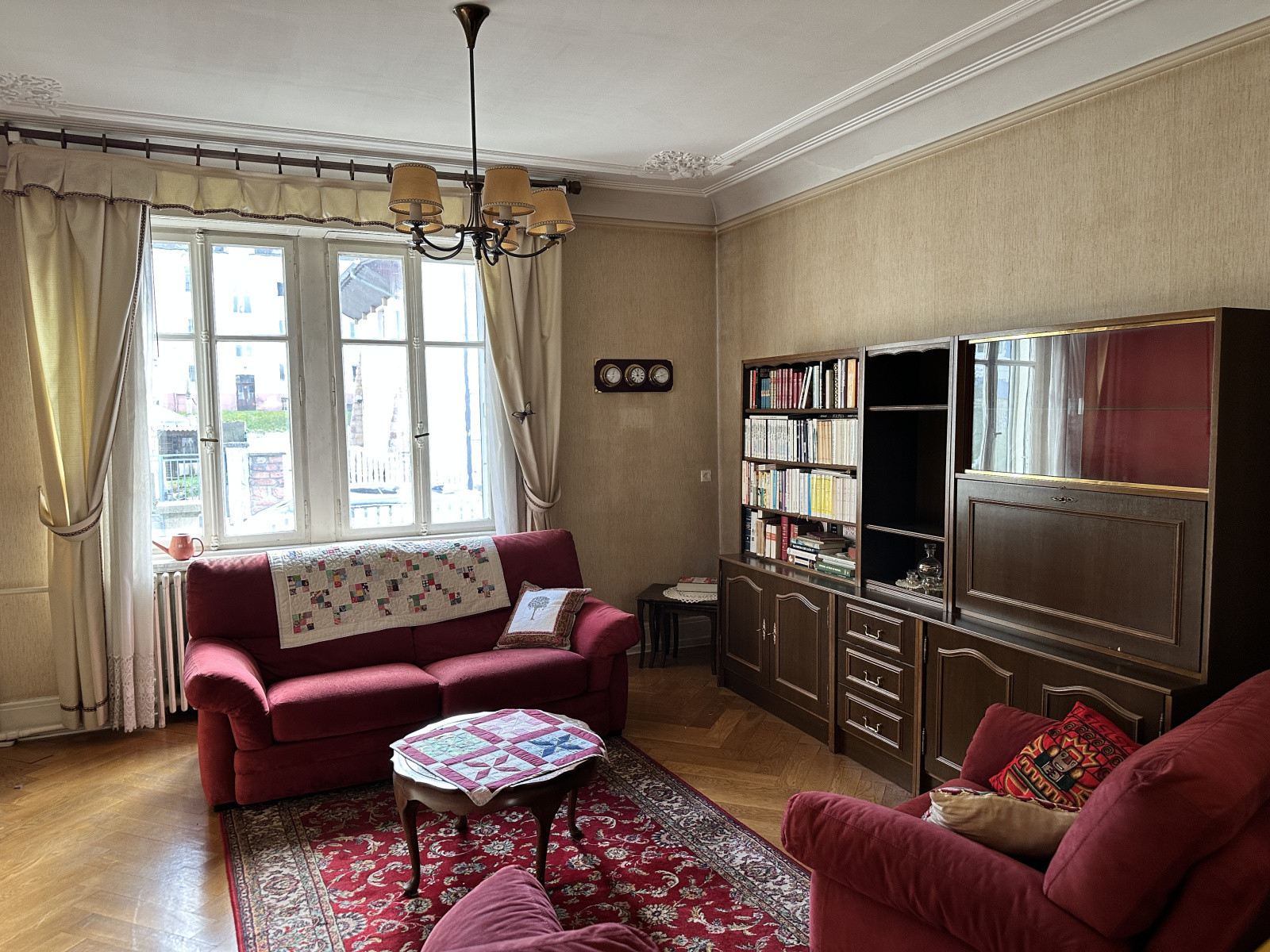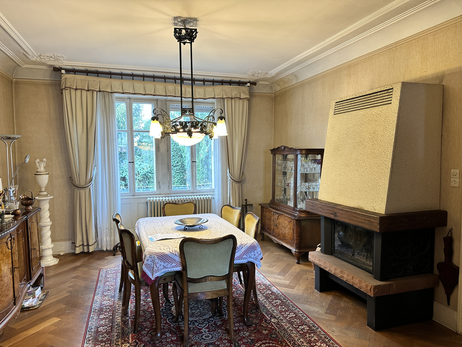 Maison de caractère où le charme de l'ancien opère, moulures au plafond, parquet d'origine.