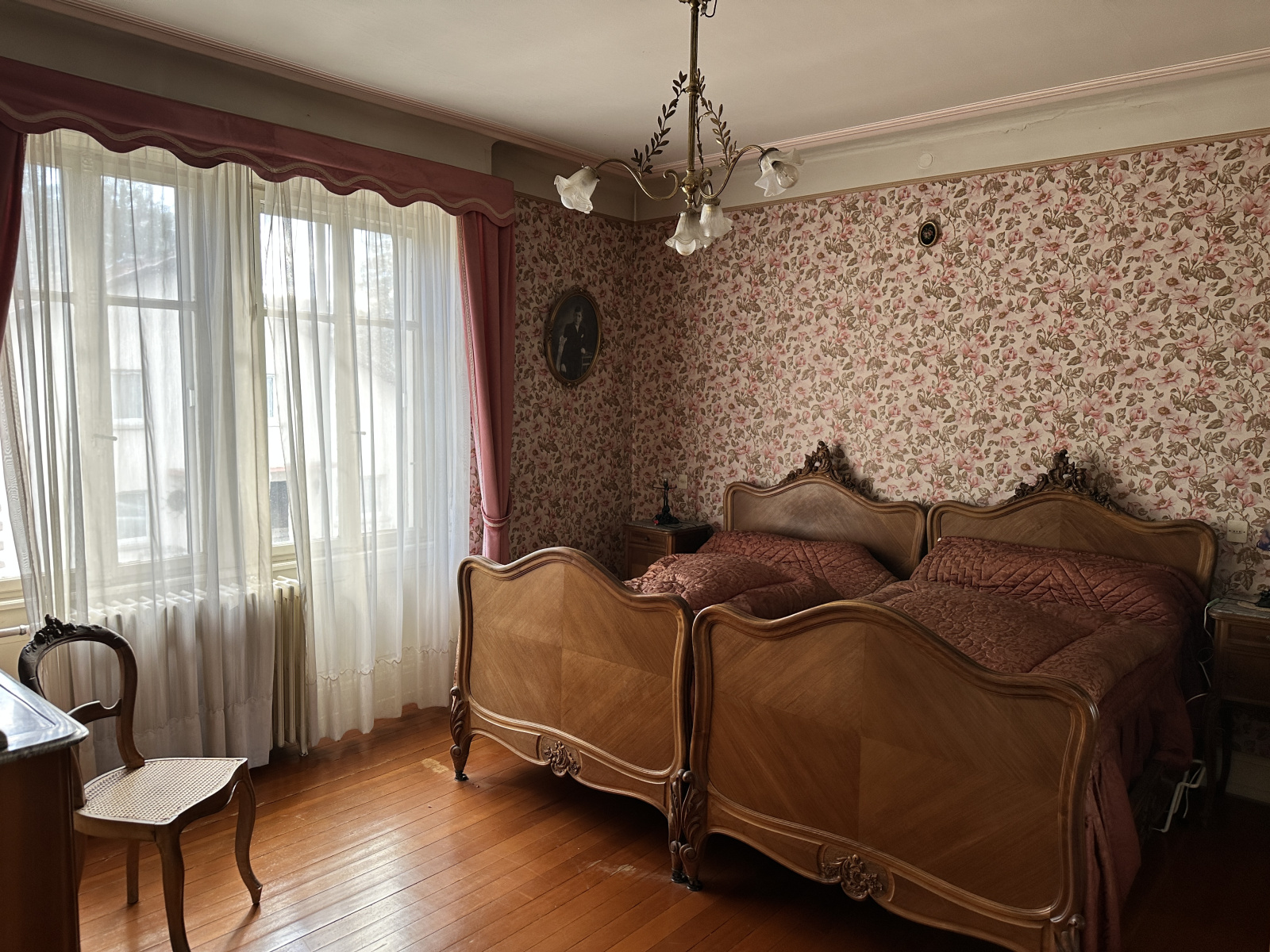 Au premier étage, trois belles chambres, une salle de bains, un ancien espace cuisine qui peut être annexé à la salle de bains (afin de l'agrandir).