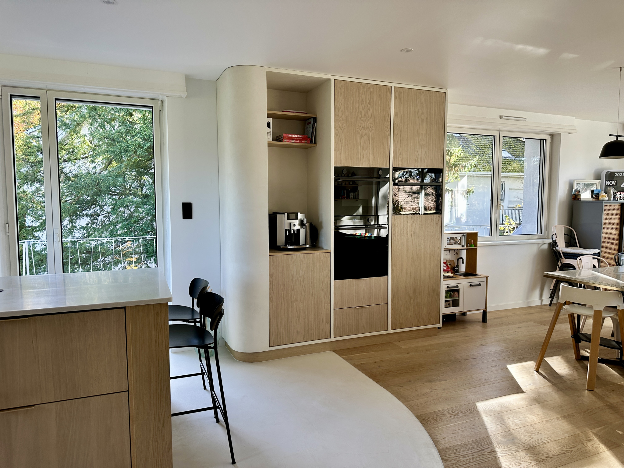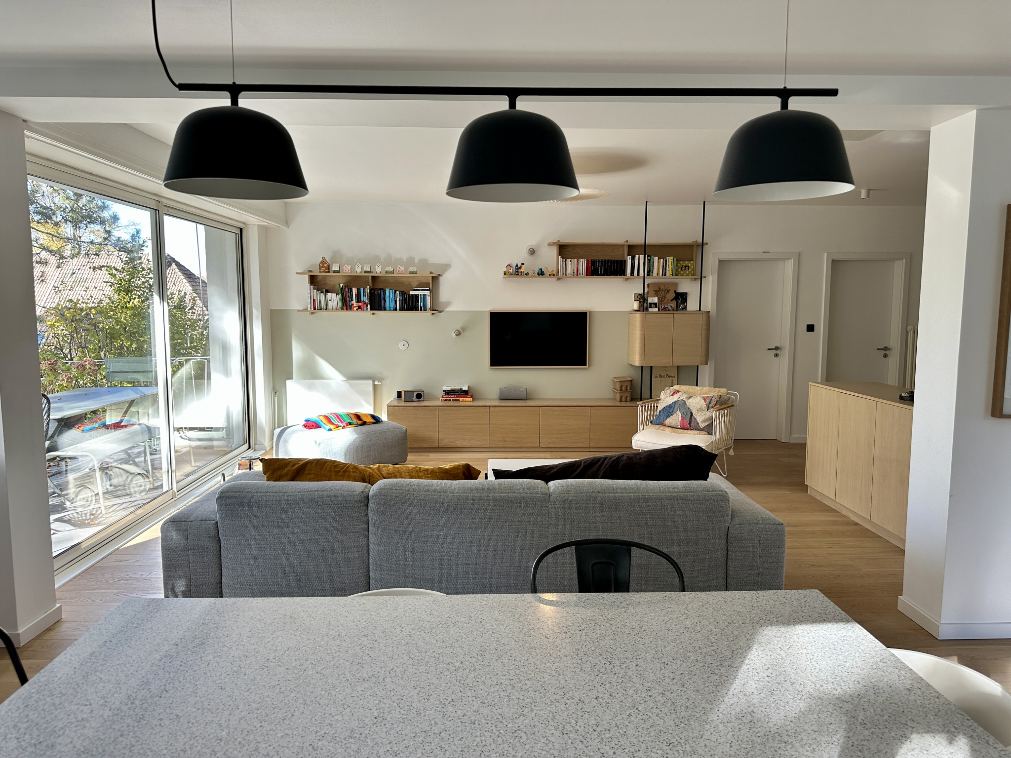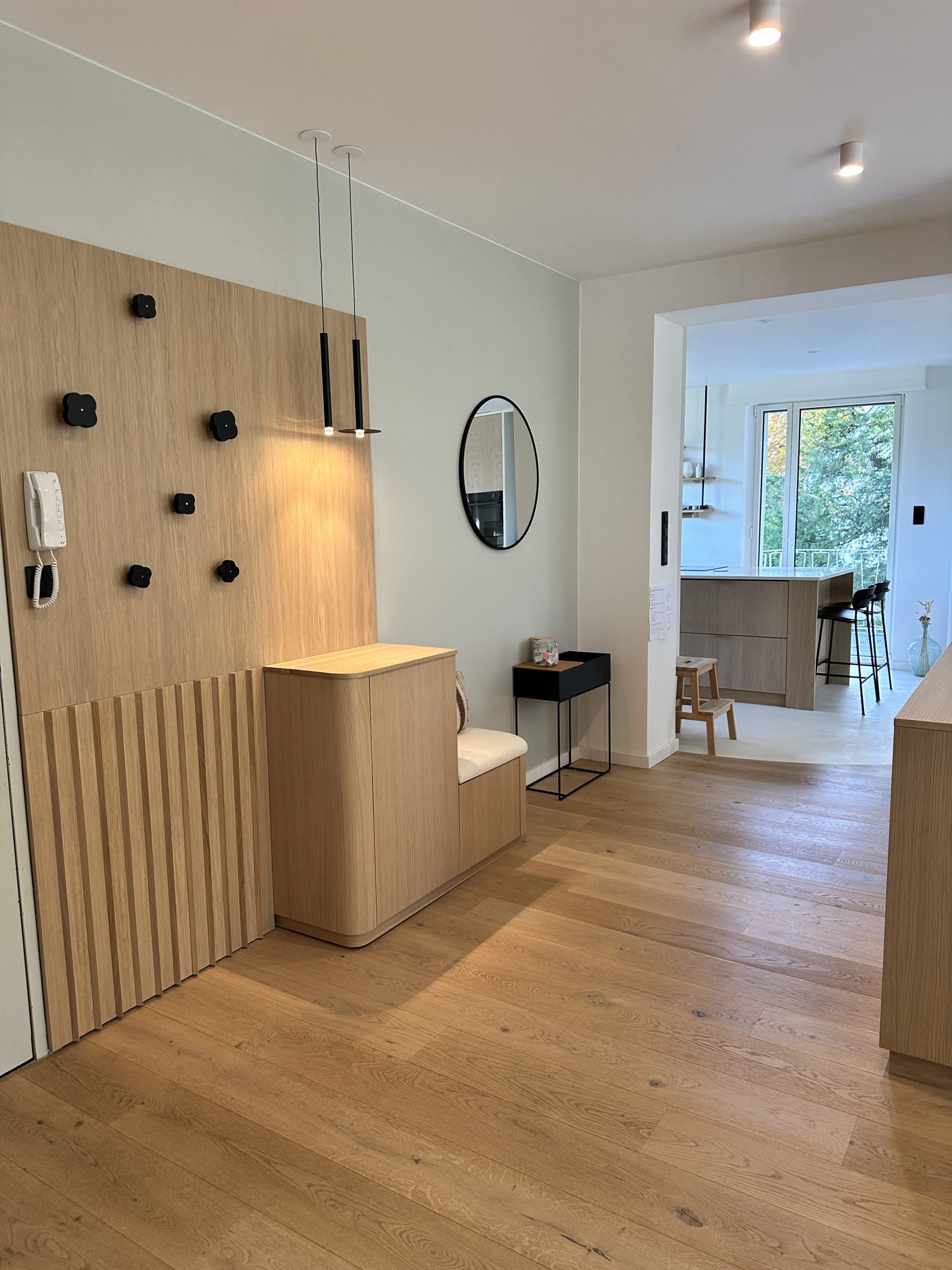 L’entrée s’ouvre sur une vaste pièce de vie de 60 m² baignée de lumière, intégrant un salon, une salle à manger, ainsi qu’une cuisine haut de gamme conçue sur mesure par un menuisier. Une pièce attenante, modulable selon vos besoins, peut faire office de bureau ou de chambre d’amis.