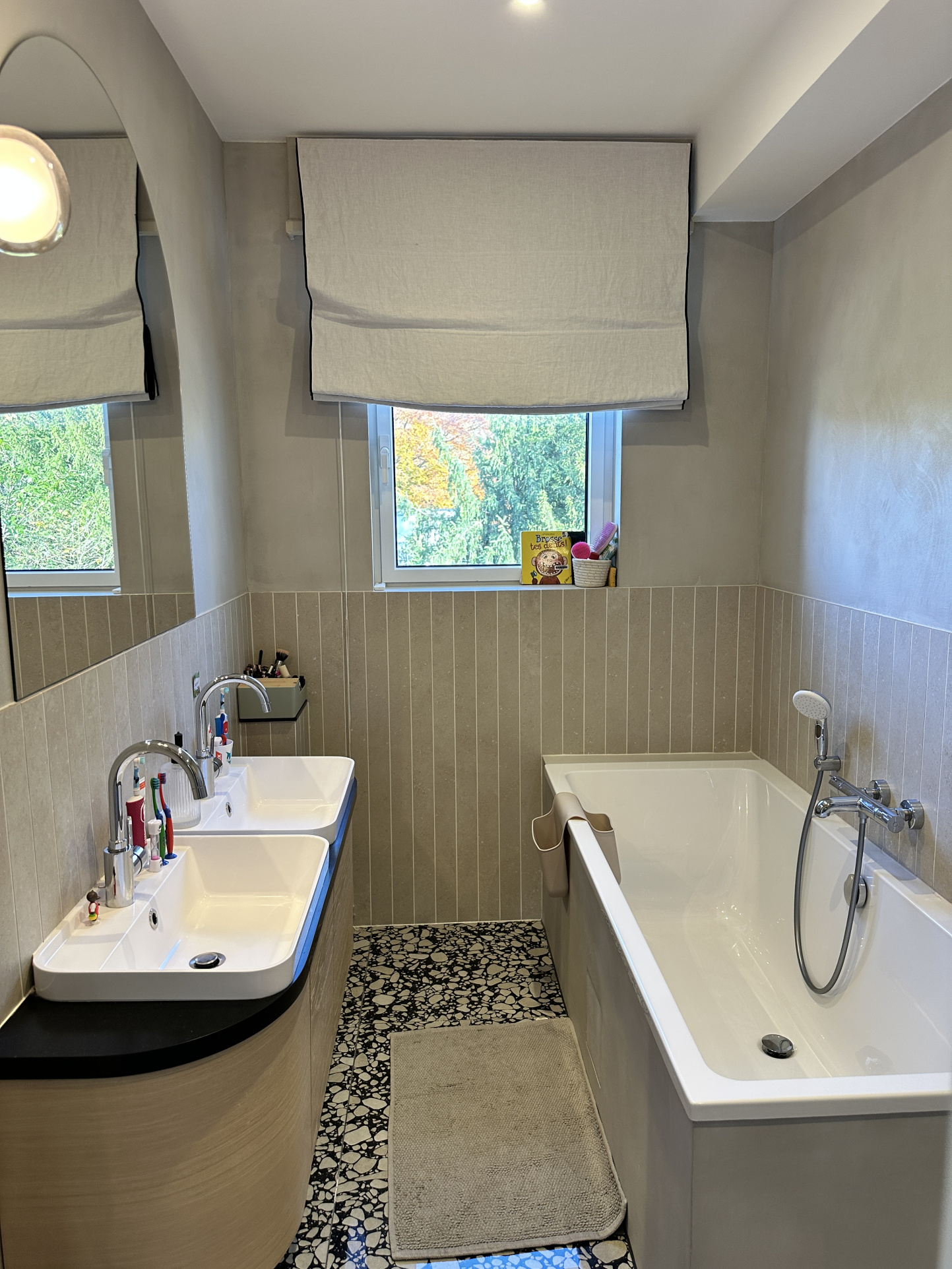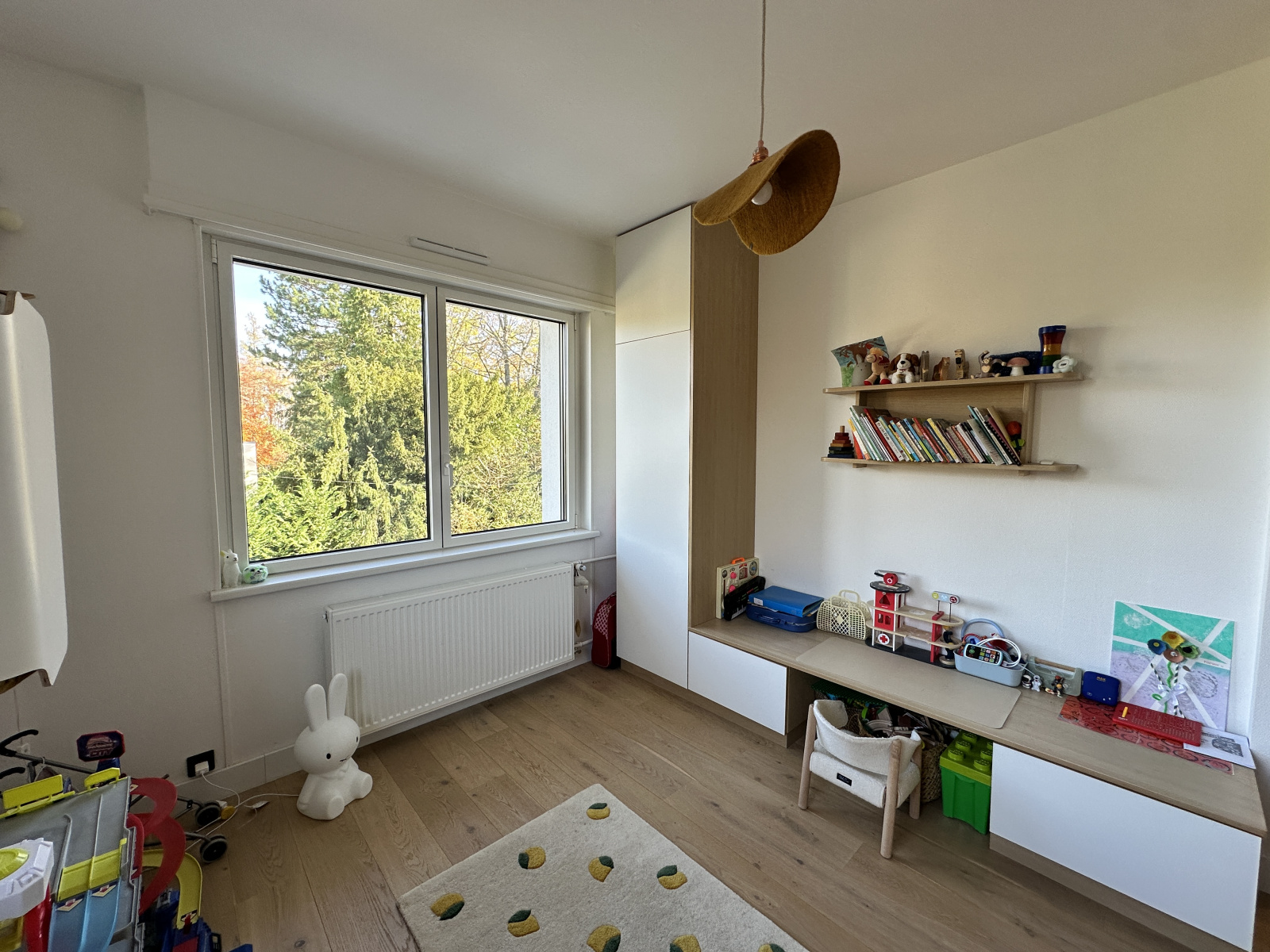 L’espace nuit se compose d’un dégagement avec placards intégrés, de deux chambres enfants équipées chacune d’un dressing et d’un espace bureau sur mesure, ainsi qu’une salle de bains avec baignoire et WC suspendu. La suite parentale, élégante et confortable (16,5 m²), comprend un dressing sur mesure, une tête de lit intégrée, et une salle d’eau privative avec douche à l’italienne, meuble double vasque et second WC suspendu.