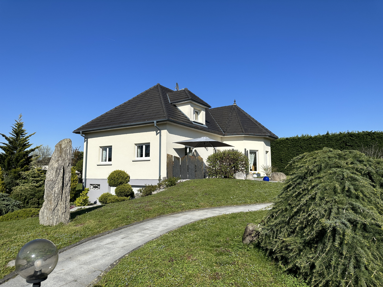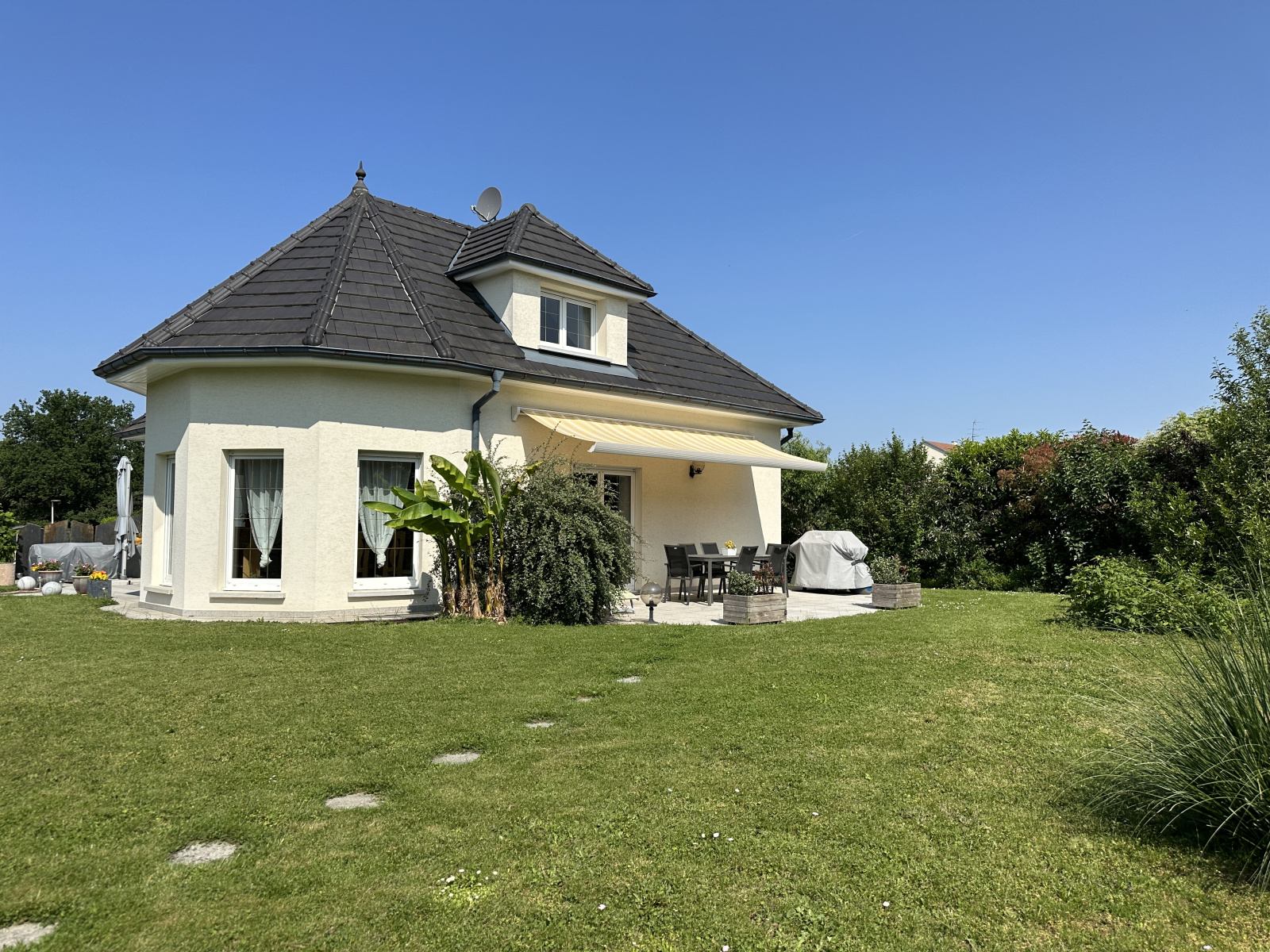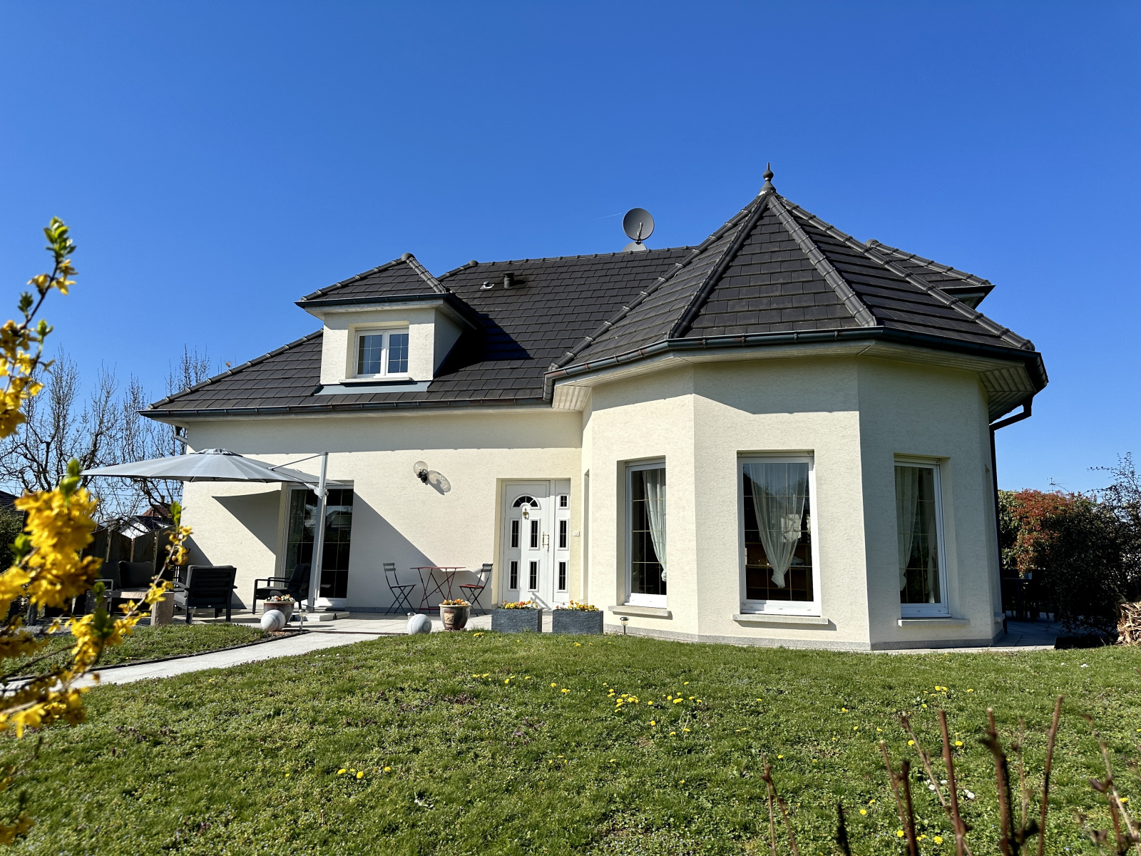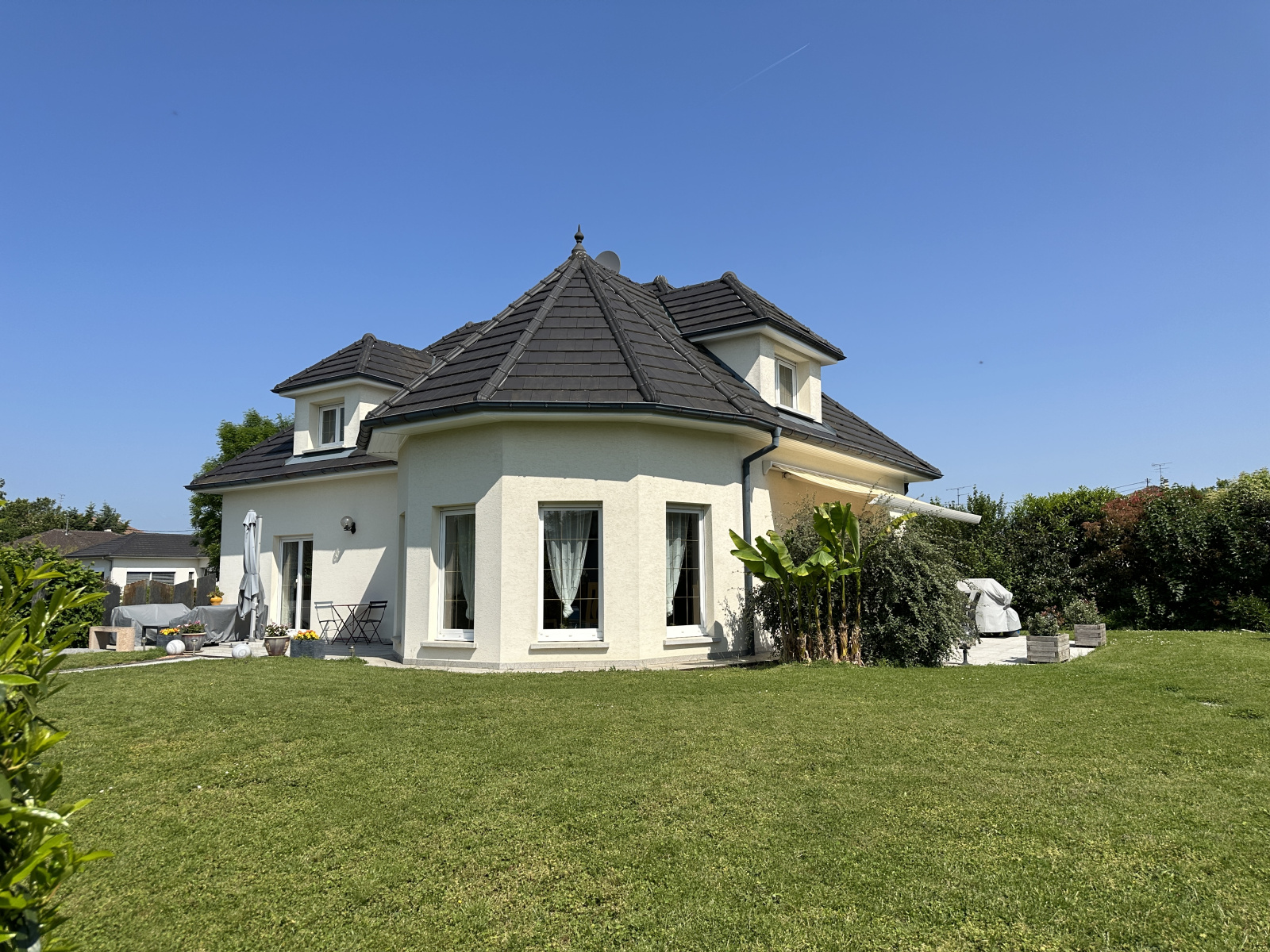 KINGERSHEIM, quartier calme à proximité des principaux axes autoroutiers, nous vous proposons à la vente cette très belle propriété des années 2000, d'une surface d'environ 194 m², sur 18 ares de terrain entièrement clos et arboré.