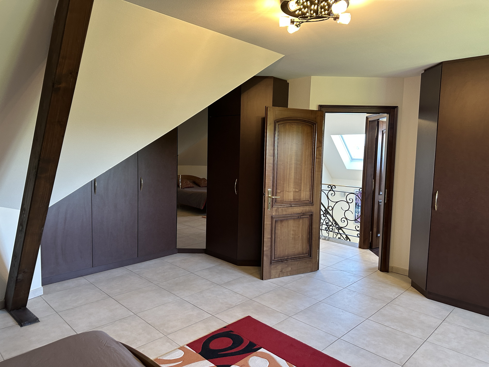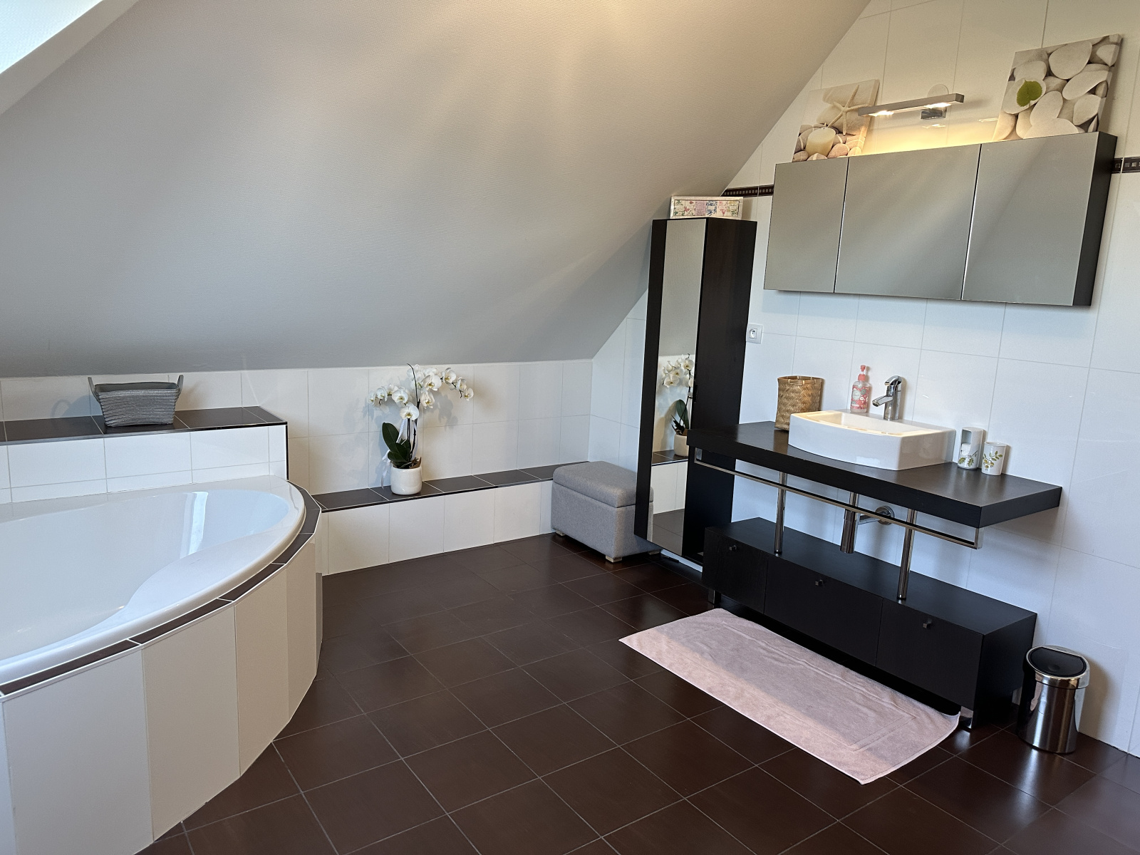 A l'étage, un dégagement, une grande chambre parentale d'environ 32 m² équipée de plusieurs dressings, deux chambres de 21 et 22 m², une salle de bains avec baignoire d'angle et wc.