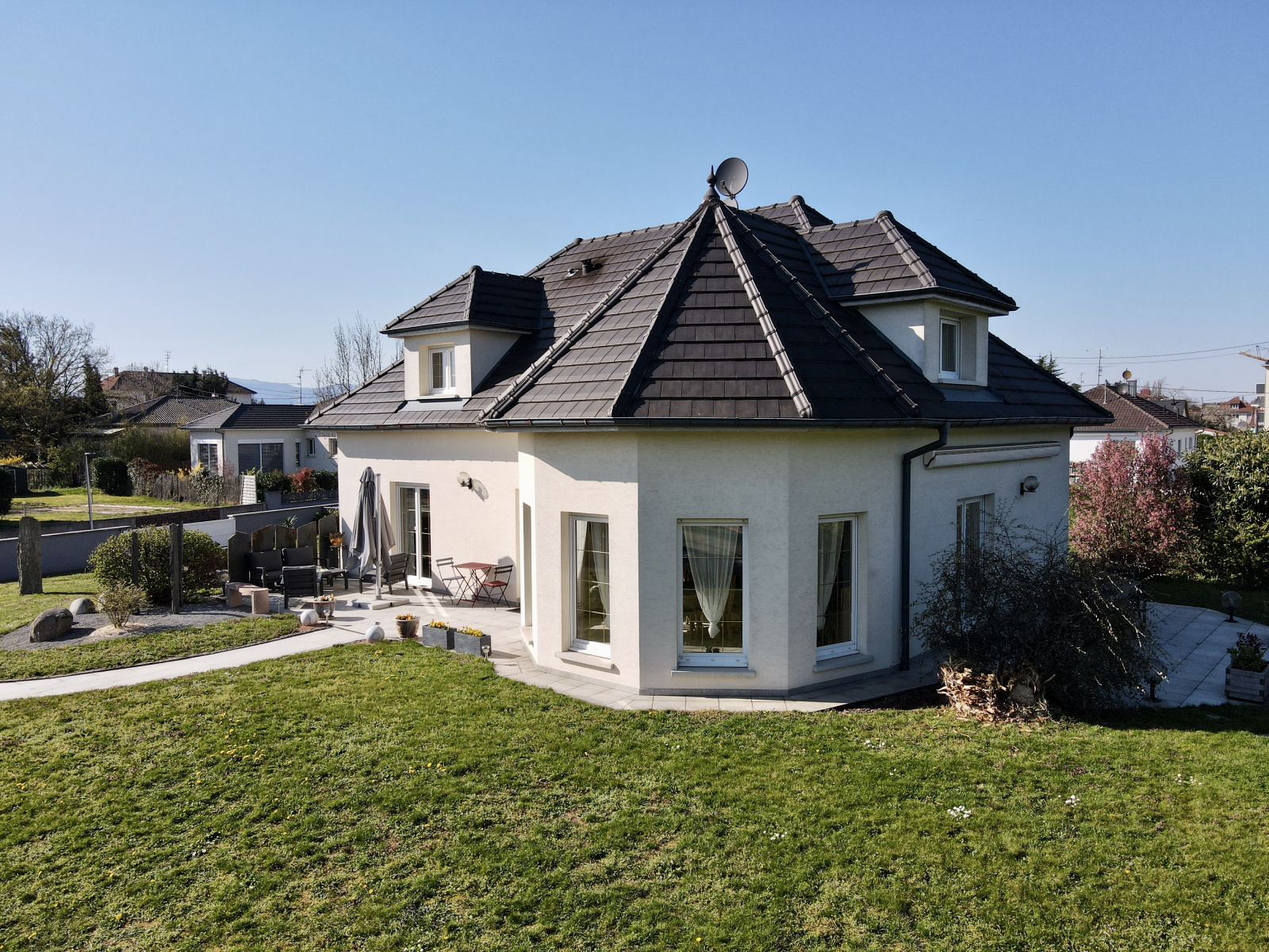 Prestations : chauffage au sol gaz, volets motorisés, porte de garage motorisée, aspiration centralisée, piscine chauffée, store motorisé sur terrasse, construction de très bonne qualité ...