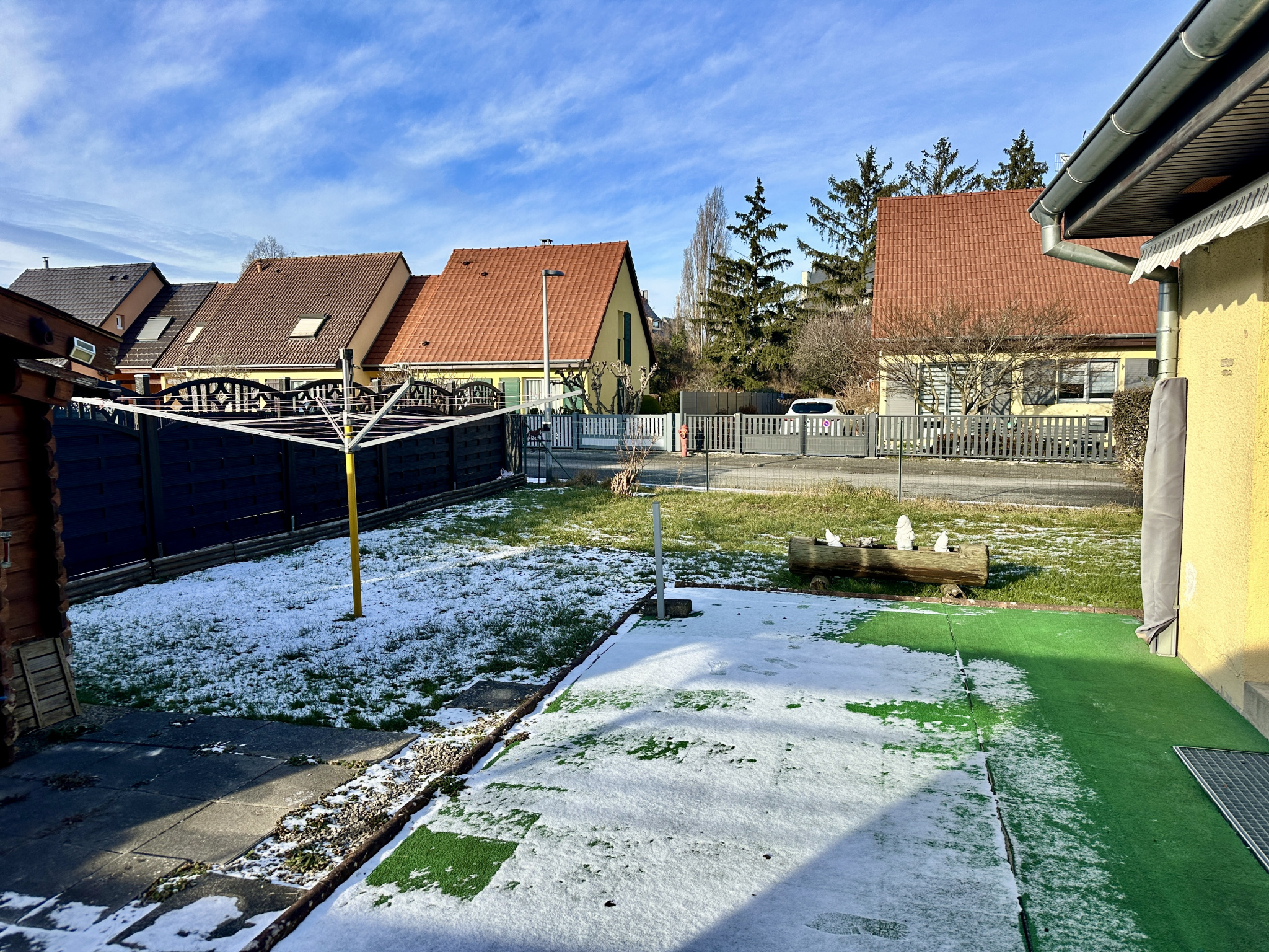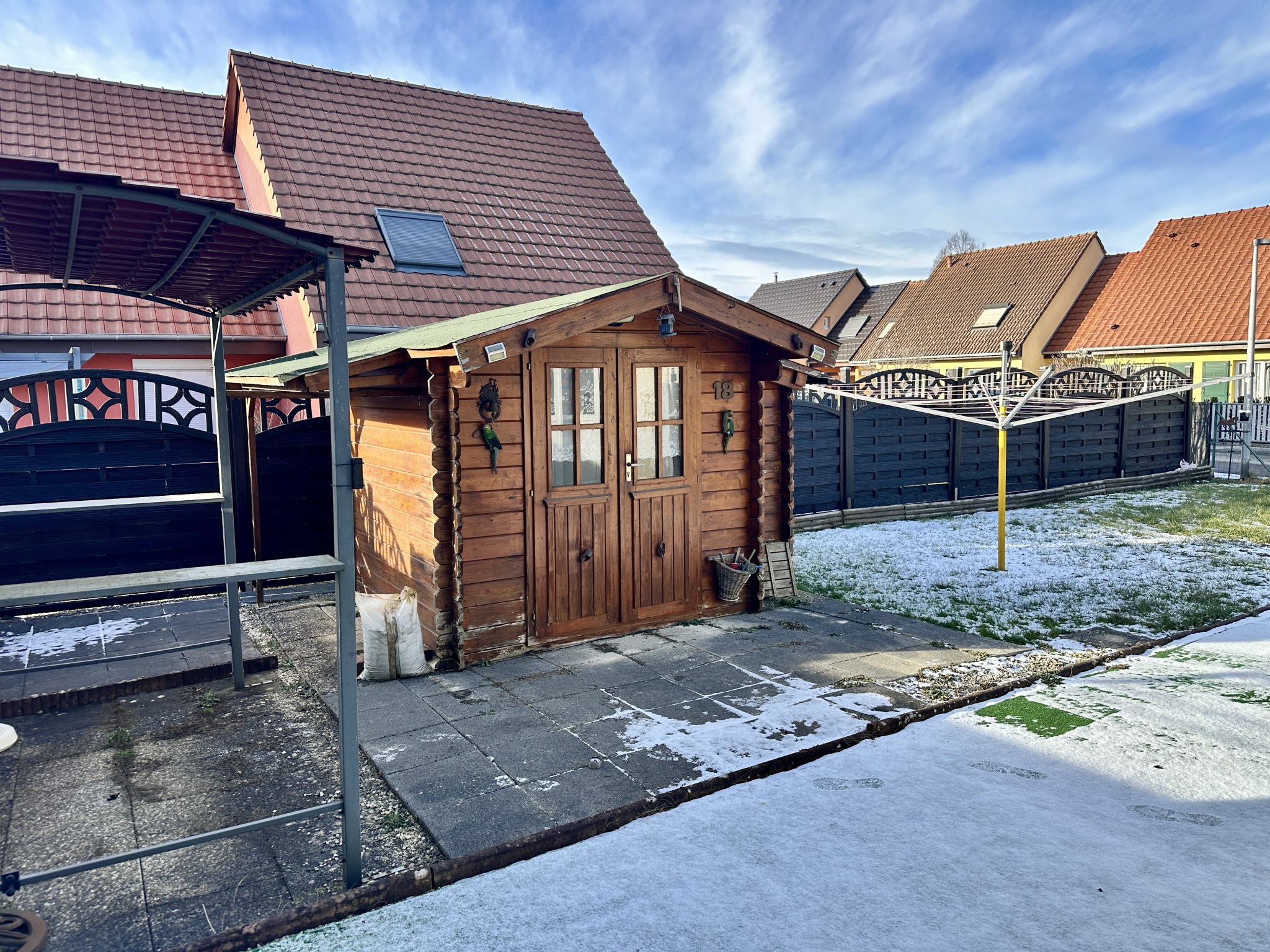 A l'extérieur, sur 4.14 ares de terrain clos, un espace jardin avec terrasse et abri de jardin.